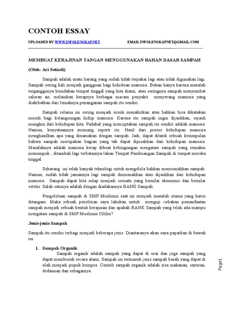 Savesave contoh esai tentang lingkungan for later. Contoh ini sendiri mengulas tentang peran pendidikan terhadap pebangunan nasional. Contoh karangan essay tentang lingkungan sekolah. Berikutnya yaitu contoh teks argumentasi singkat tentang lingkungan. Pastinya sudah ya, namun apakah pengertian paragraf argumentasi itu?
